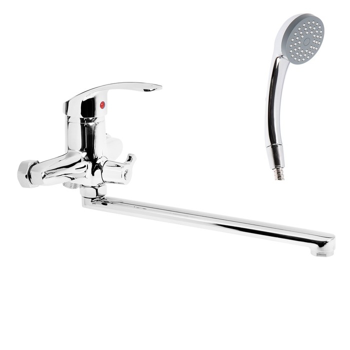 Cмеситель для ванны "Эверест" B22-024, однорычажный, плоский излив, душевой набор, хром