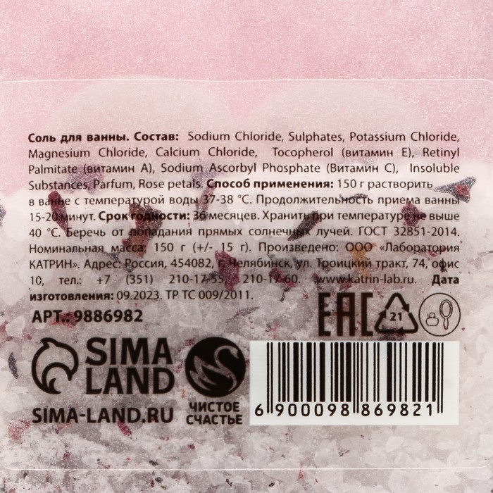 Cоль для ванны с лепестками роз Bath salt, 150 г, ЧИСТОЕ СЧАСТЬЕ