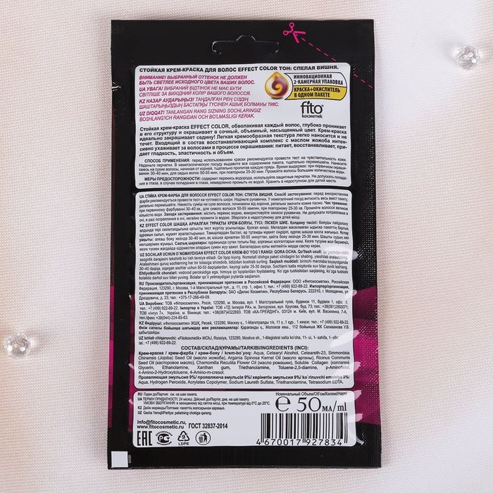 Cтойкая крем-краска для волос Effect Сolor тон спелая вишня, 50 мл