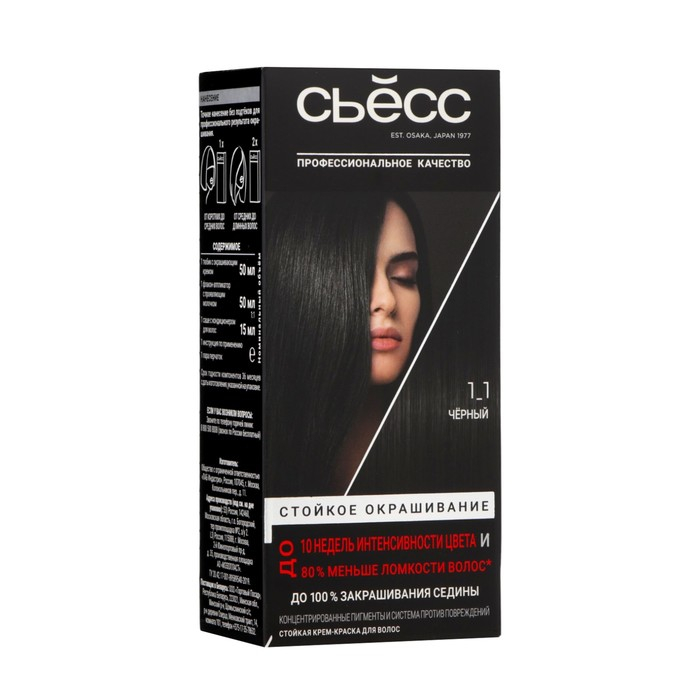 Cтойкая крем-краска для волос Сьесс Color, тон 1-1, чёрный