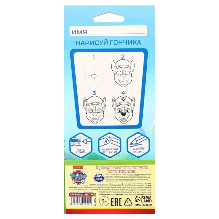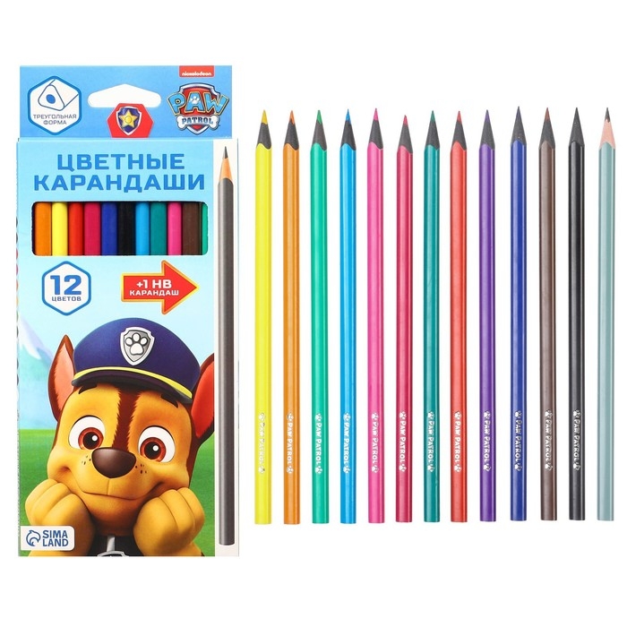 Цветные карандаши, 12 цветов, трехгранные, Щенячий патруль