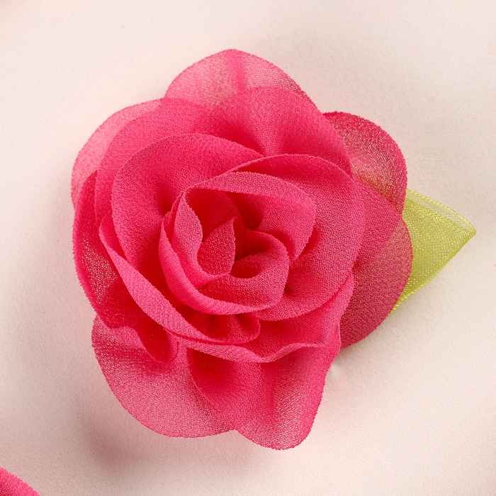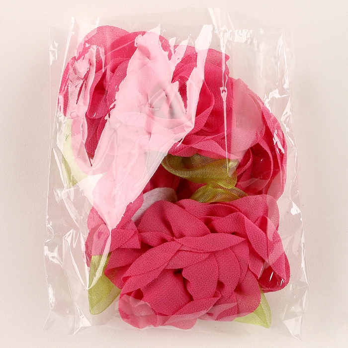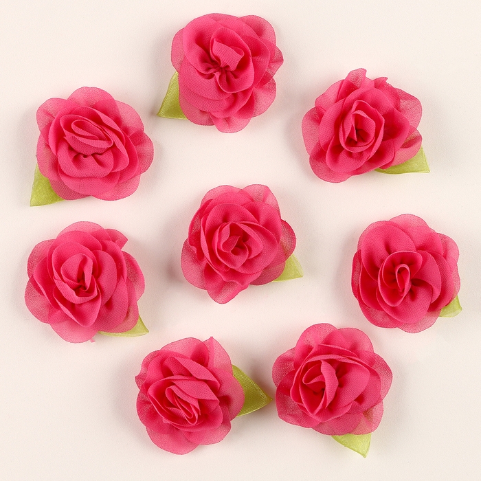 Цветок с лепестками, листиком, из ткани, набор 8 шт., цвет фуксия