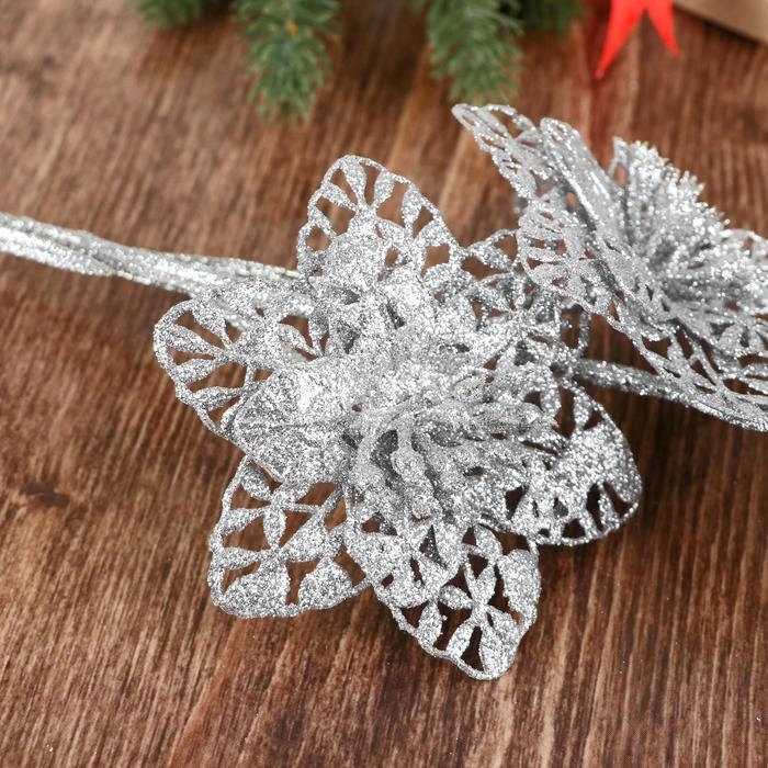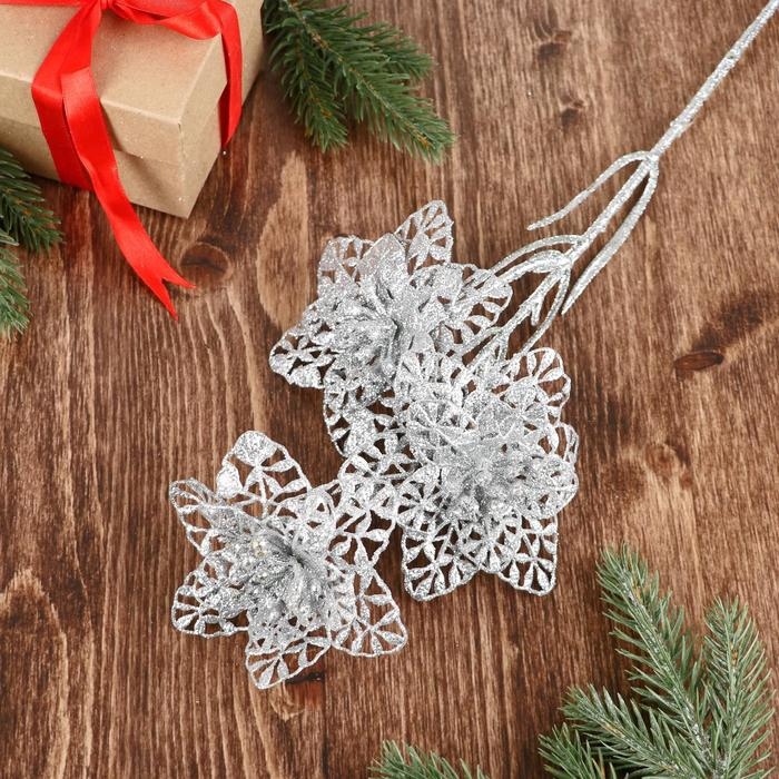 Цветы искусственные блеск "Три кружевные ромашки" 8х60 см, серебро