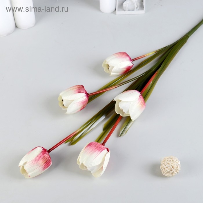 Цветы искусственные "Тюльпан Аморета" 4*90 см,( размер бутона 6х4см) белый с малиновым