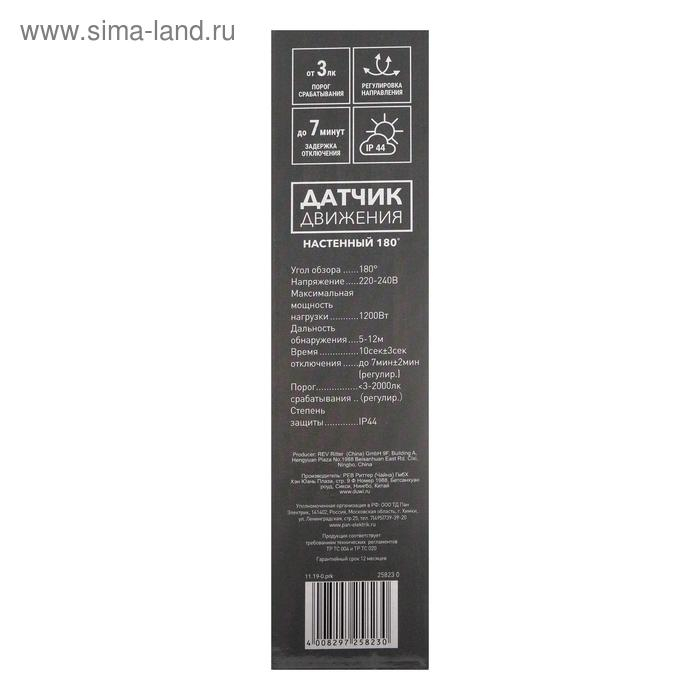 Датчик движения Düwi DD-01, 180°, 1200Вт, 10-420 с, 5-12 м, 2500Лк, IP44 , настенный, черный