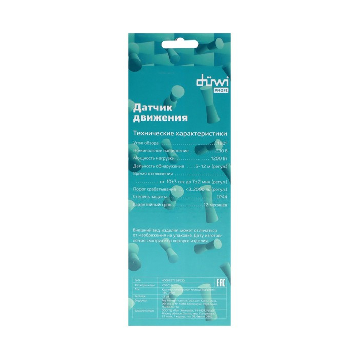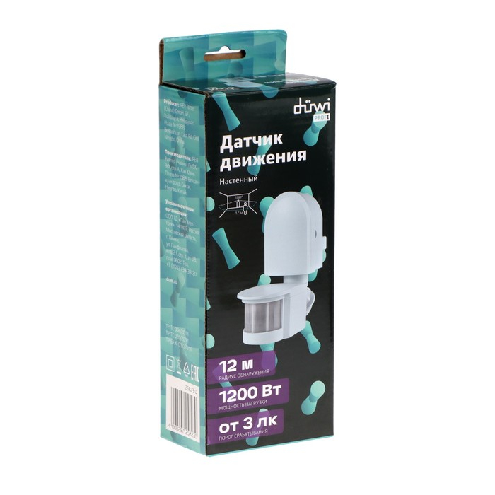 Датчик движения düwi DD-01, 180°, 1200 Вт, 5-12 м, IP44, настенный, белый