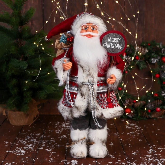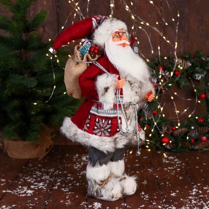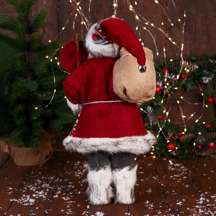 Дед Мороз "С охапкой подарков и в меховых сапожках" 50 см, красный