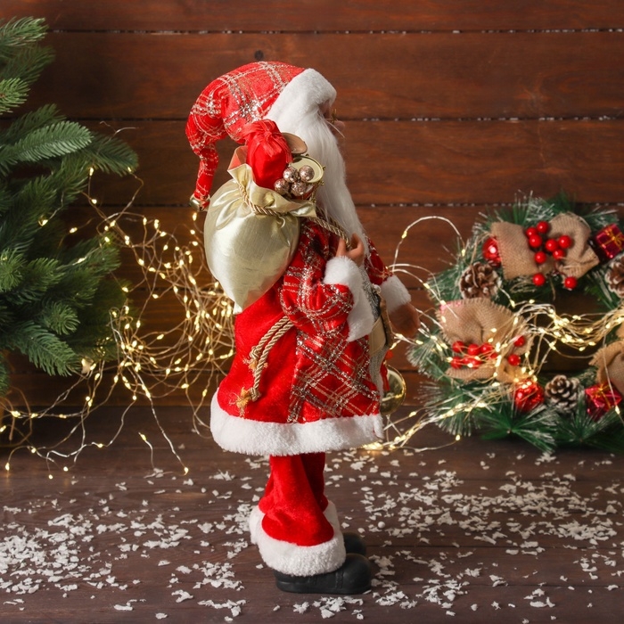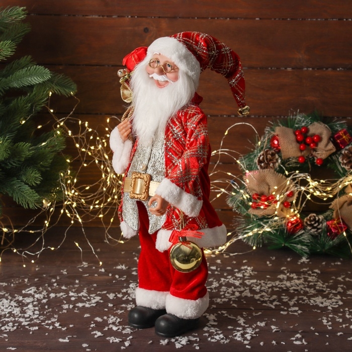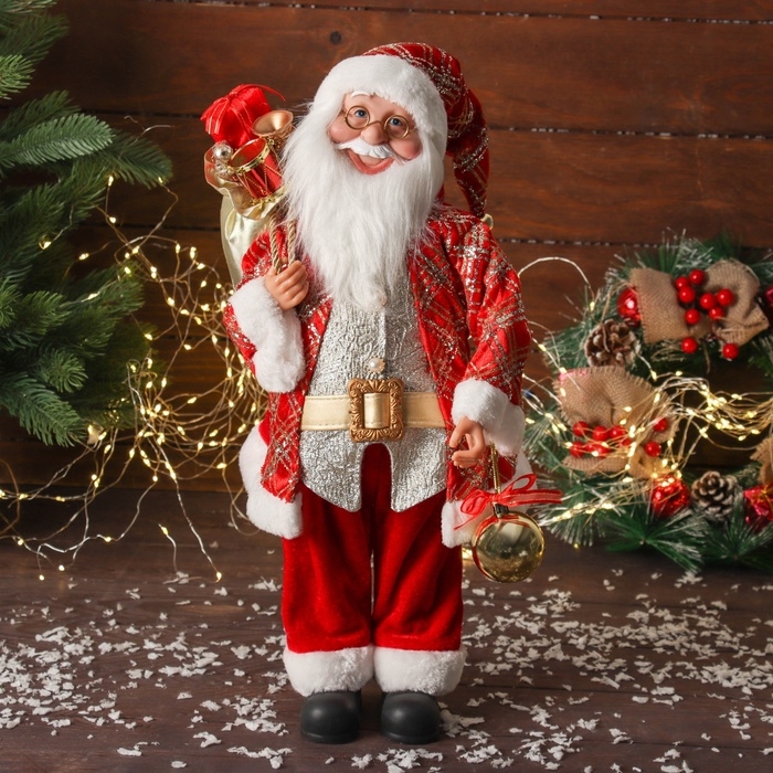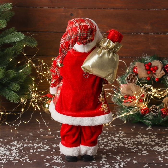 Дед Мороз "С шариком и подарками" двигается, 45х22 см, красный