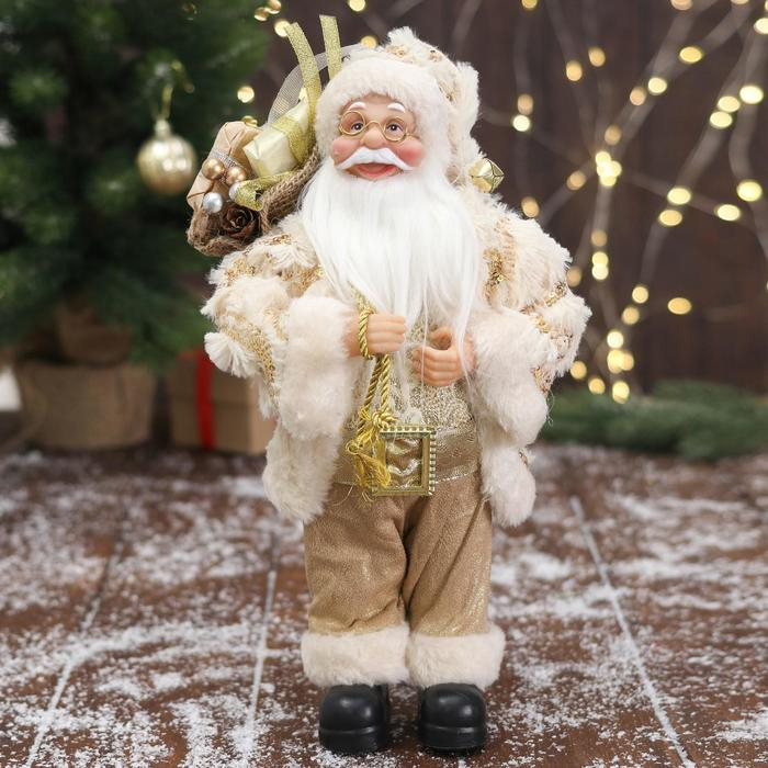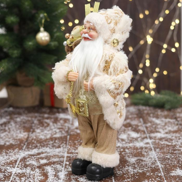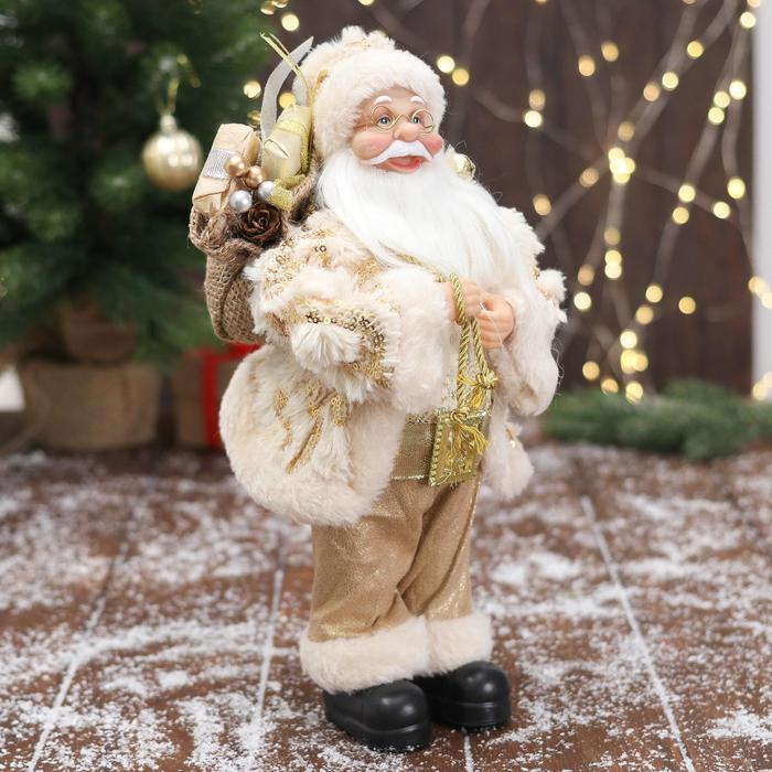 Дед Мороз "В бело-золотистом костюме блеск, с подарками" 30х15 см