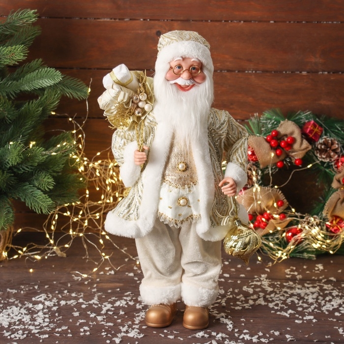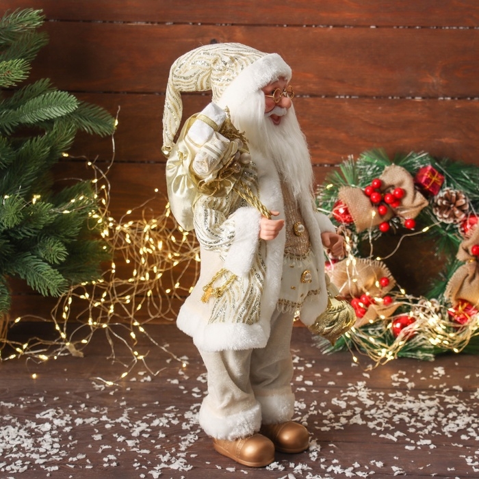 Дед Мороз "В блестящем кафтане, с подарками" двигается, 45х24 см, золото