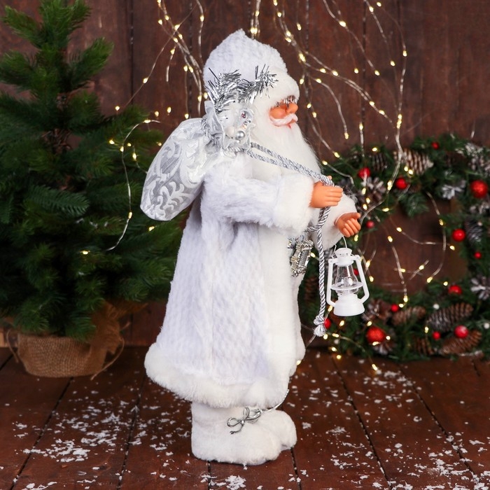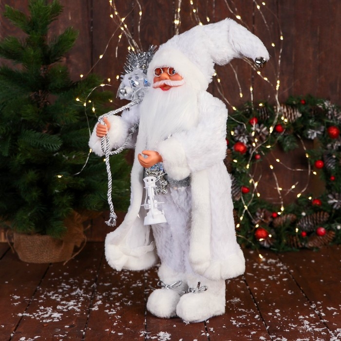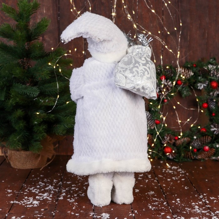 Дед Мороз "В блестящем жилете" 50 см, серебристо-белый