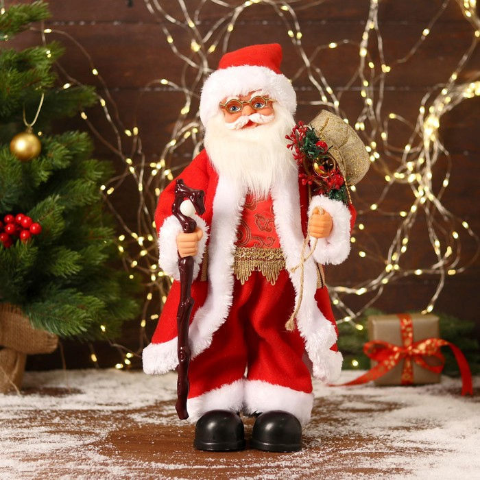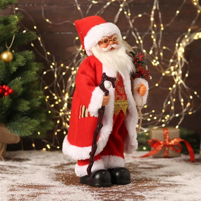 Дед Мороз "В красном костюмчике с орнаментом, с посохом" двигается, 20х40 см