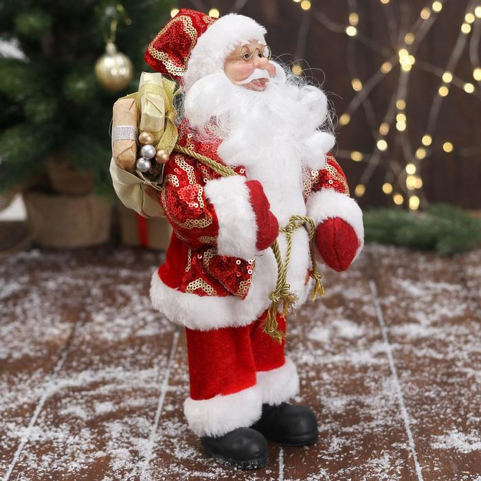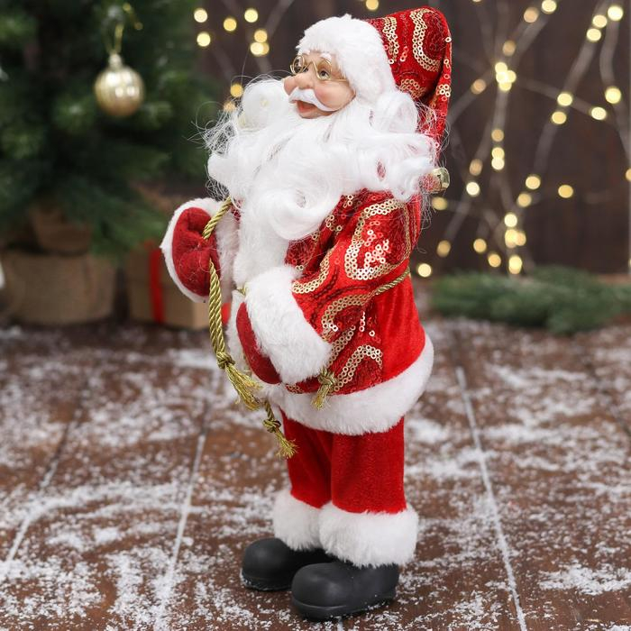 Дед Мороз "В красной шубе с подвязкой, с подарками" 16х30 см
