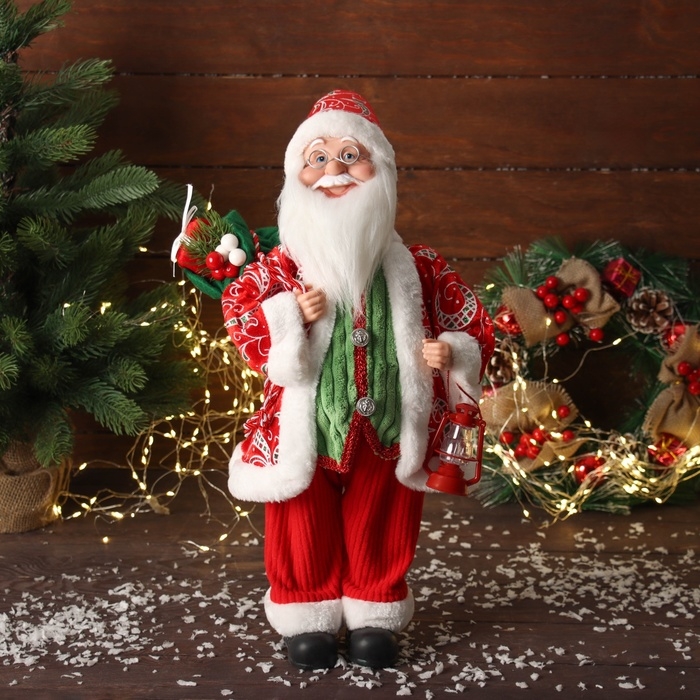 Дед Мороз "В жилете и с фонарём" двигается, 45х22 см, красно-зелёный