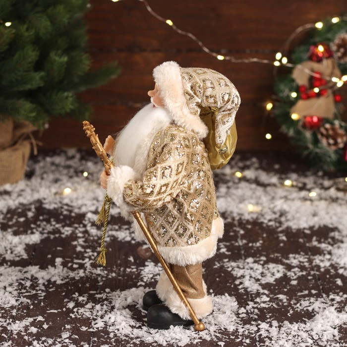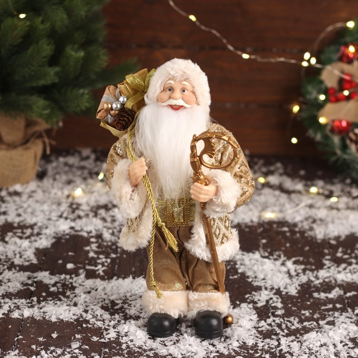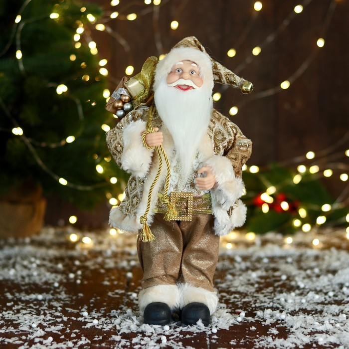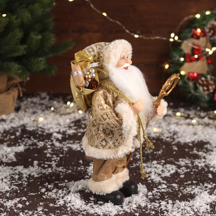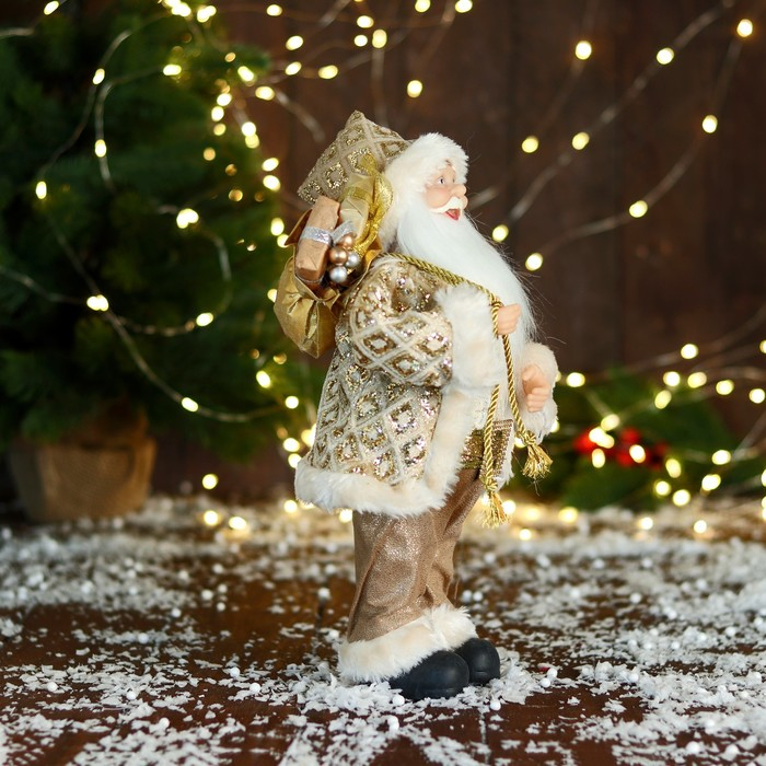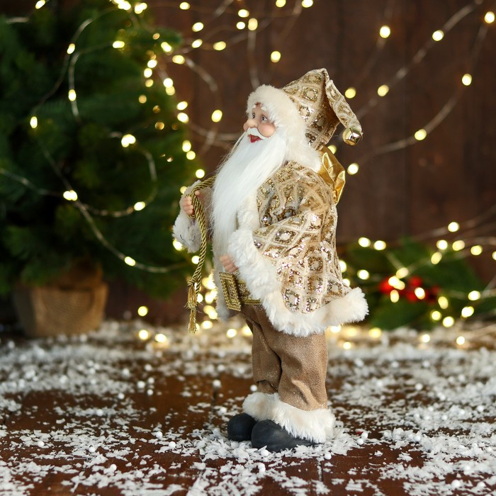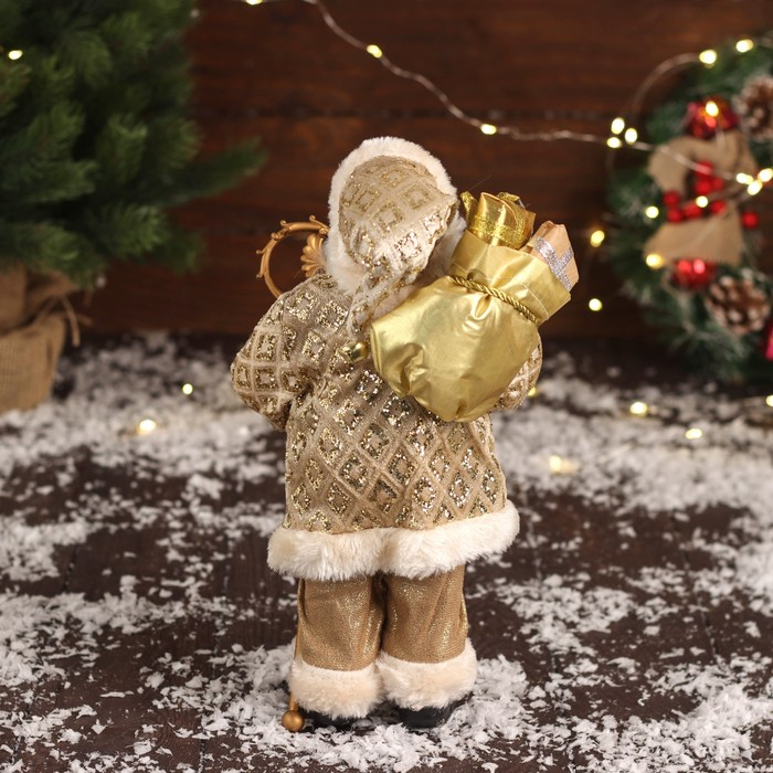 Дед Мороз "В золотой шубе, с ремешком, и подарками" 30х16 см