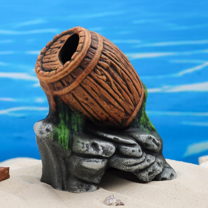 Декор для аквариума "Бочка на камнях", керамический, 13 x 10 x 17 см