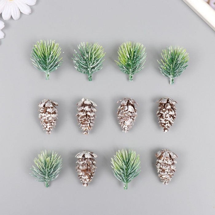 Декор для творчества "Еловые веточки и шишки" набор 12 шт 4х2х2; 4,5х3х3 см