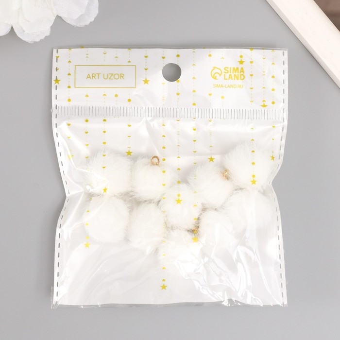 Декор для творчества искусственный мех "Шарик" белый набор 10 шт, d=2 см