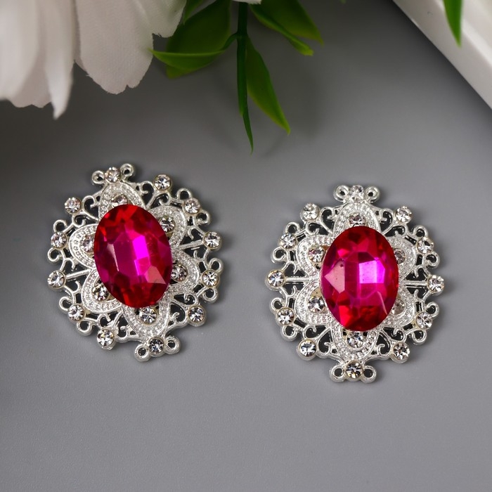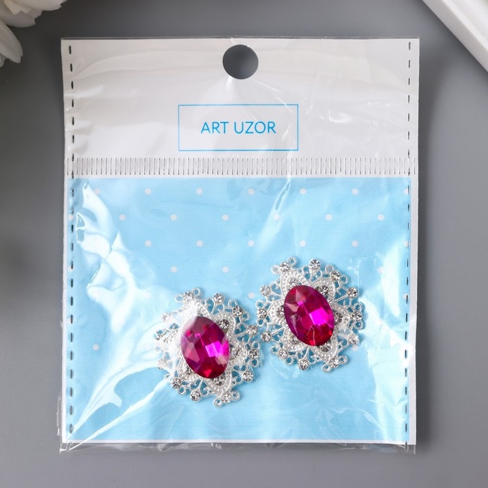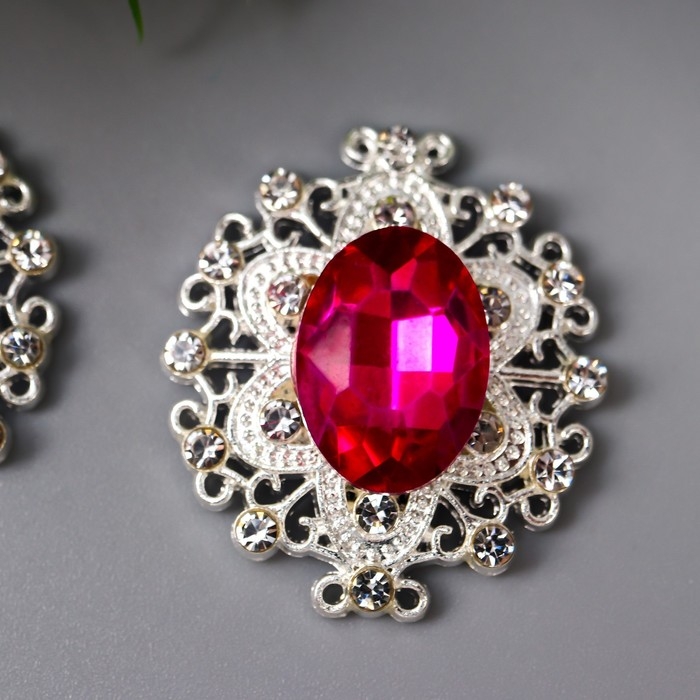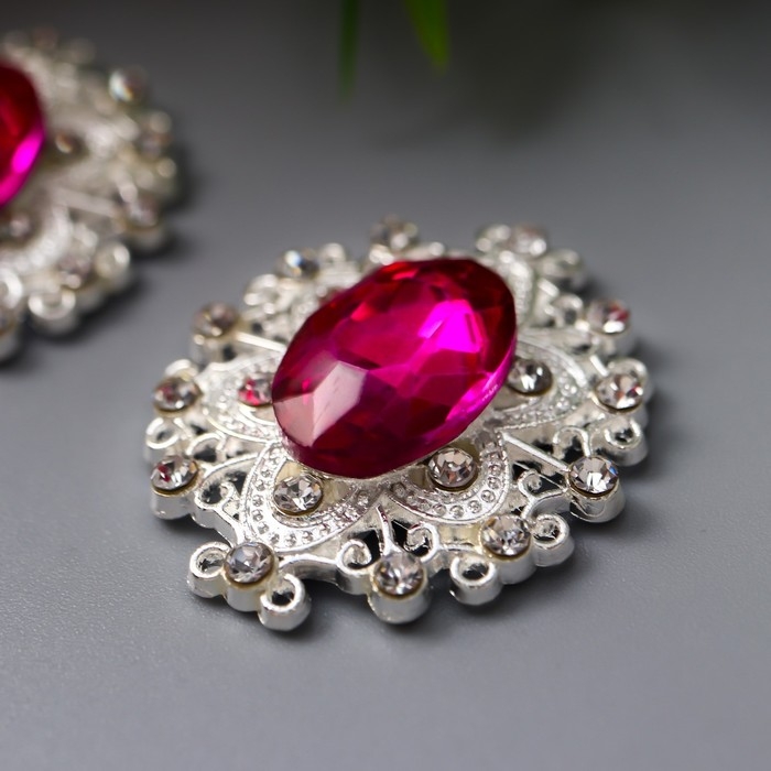 Декор для творчества металл "Медальон узорный" ярко-розовый кристалл 2,6х2,4 см