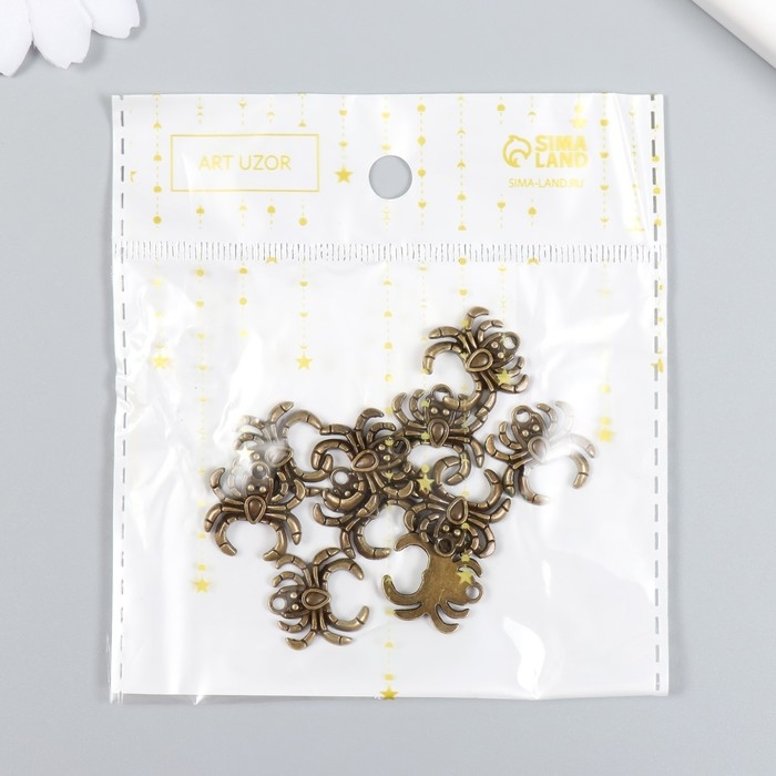 Декор для творчества металл "Паук" набор 10 шт бронза 1,8х1,8 см