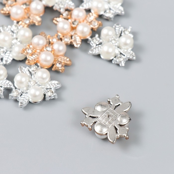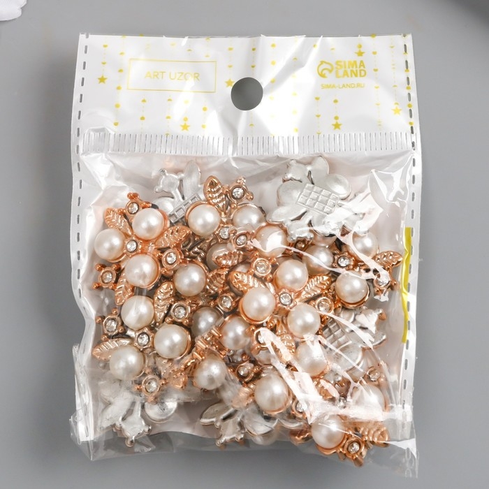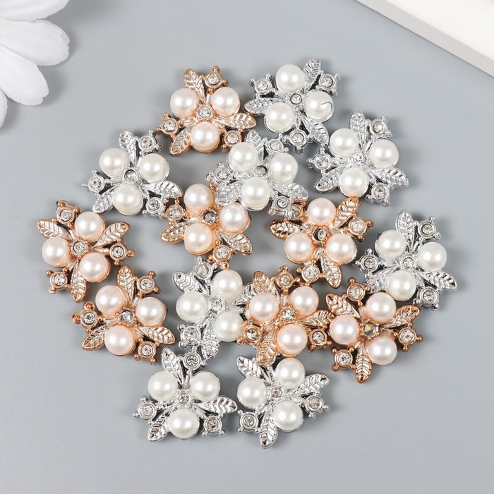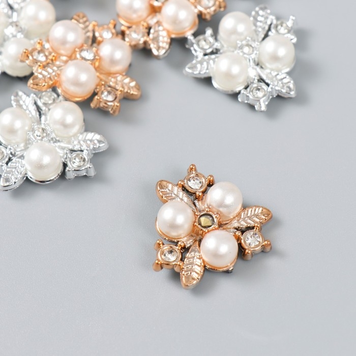 Декор для творчества пластик "3 жемчужины с листьями, стразы" набор 15 шт 2,3х2,3 см