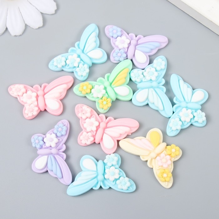 Декор для творчества пластик "Бабочка в ромашках" набор 10 шт