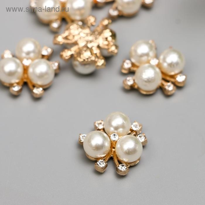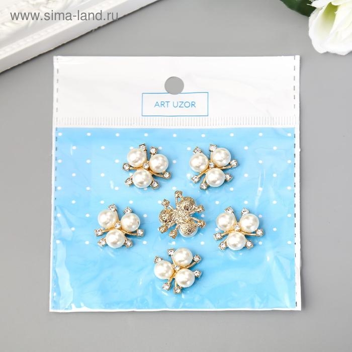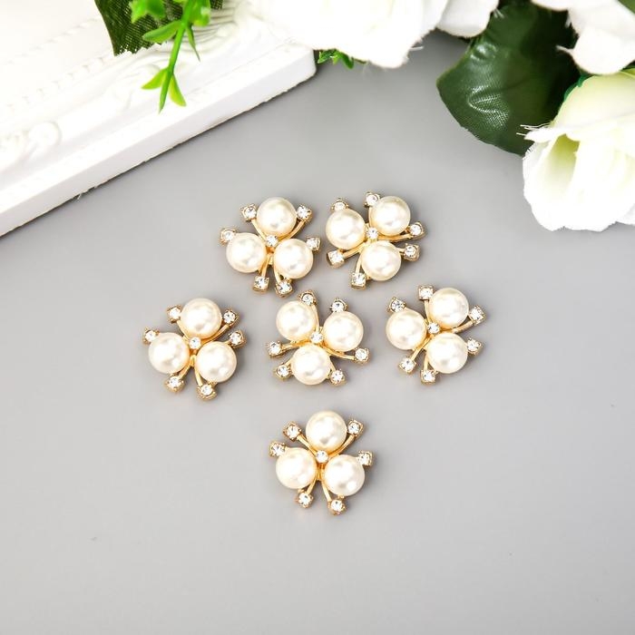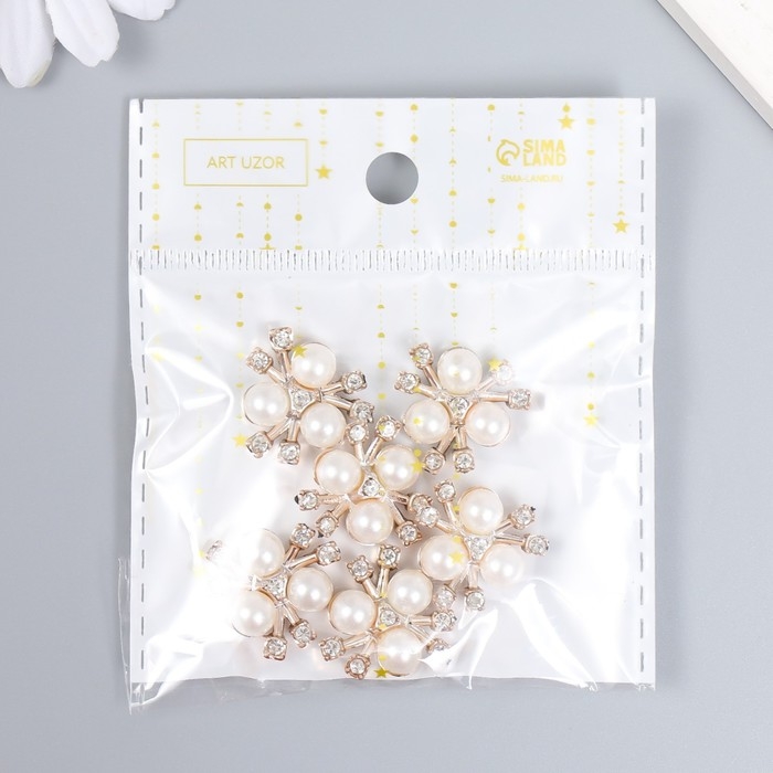 Декор для творчества пластик "Цветок с жемчужинами" набор 6 шт 2х2 см