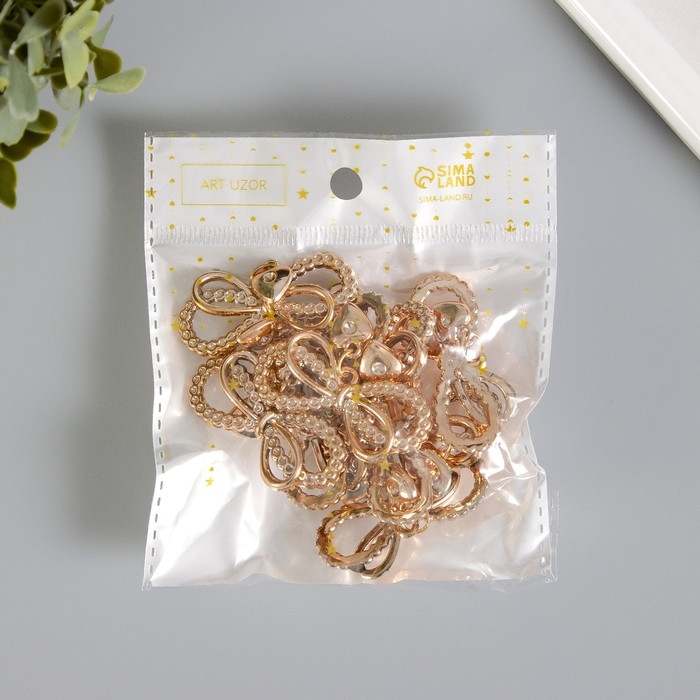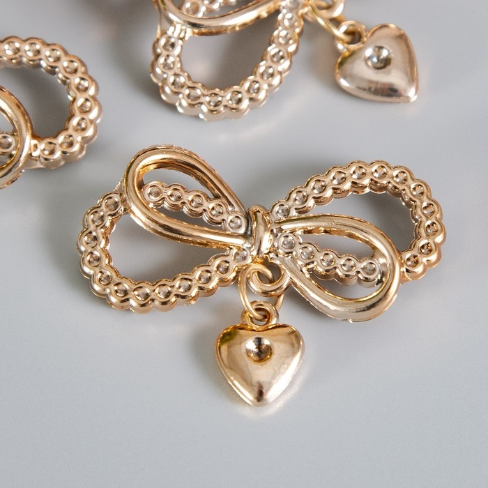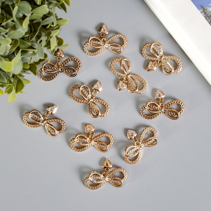 Декор для творчества пластик "Двойной бантик с сердечком" набор 10 шт 4,5х3,3 см
