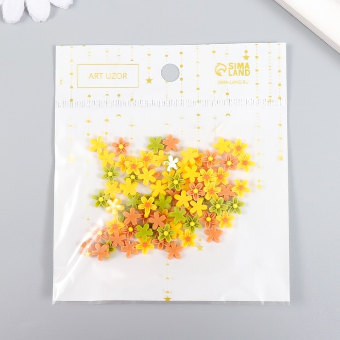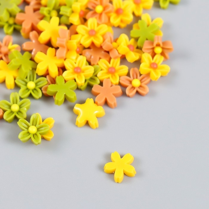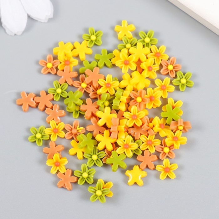 Декор для творчества пластик "Незабудки зелень, жёлтые, беж" набор 70 шт 0,8х0,8 см