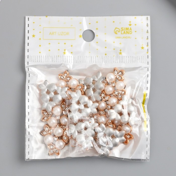 Декор для творчества пластик, стразы "3 жемчужины с листиками" набор 15 шт 2х2 см