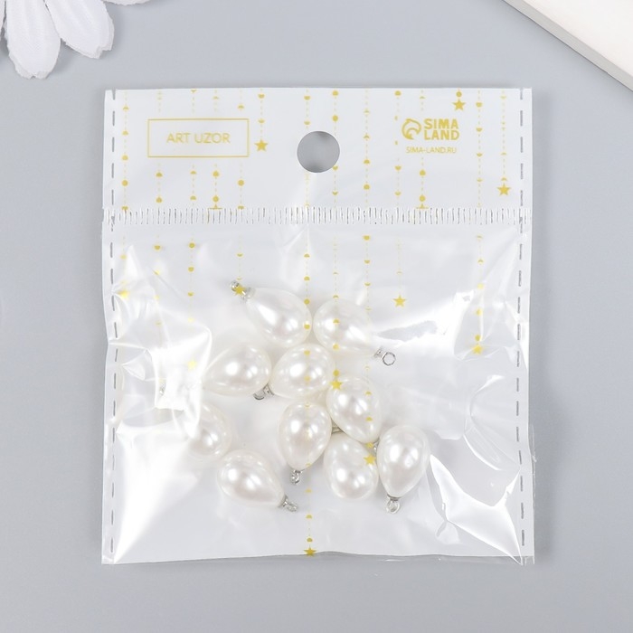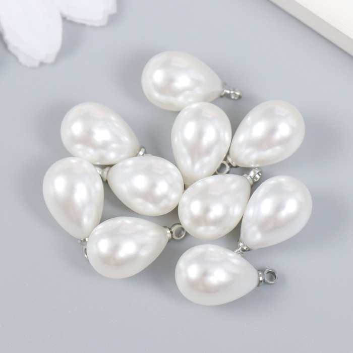 Декор для творчества пластик "Жемчужина-капелька с петелькой" набор 10 шт 1,4х1 см