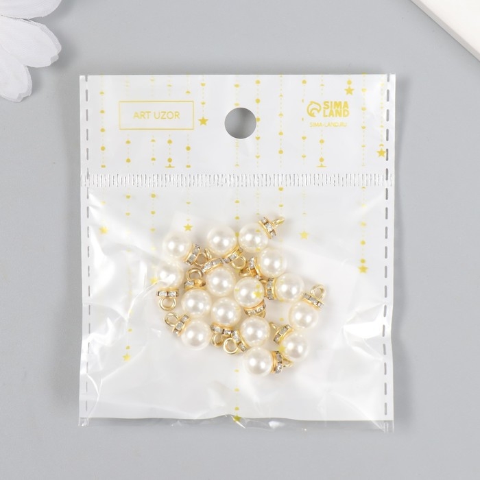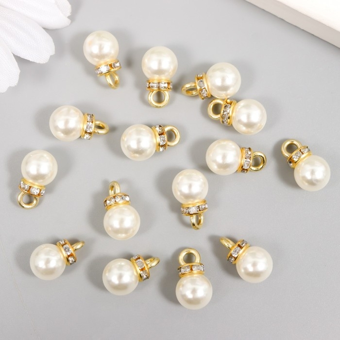 Декор для творчества пластик "Жемчужный шар с петелькой-кольцом" набор 15 шт 1,2х0,8х0,8 см