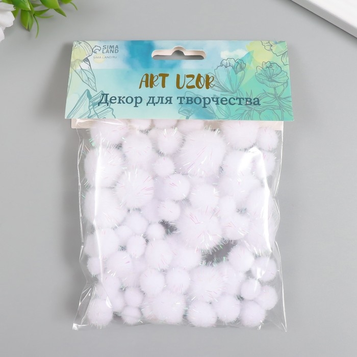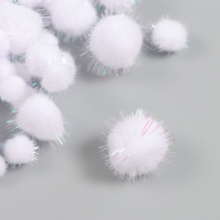 Декор для творчества "Помпончики. Белоснежный с мишурой" набор 100 шт