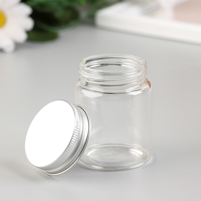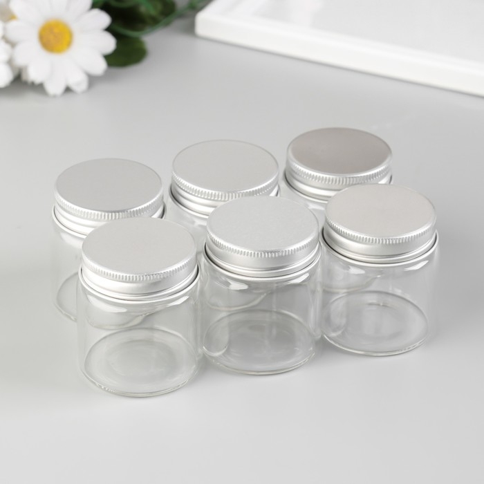 Декор для творчества стекло "Баночка с крышкой" серебро набор 6 шт 4,7х4,7х5 см