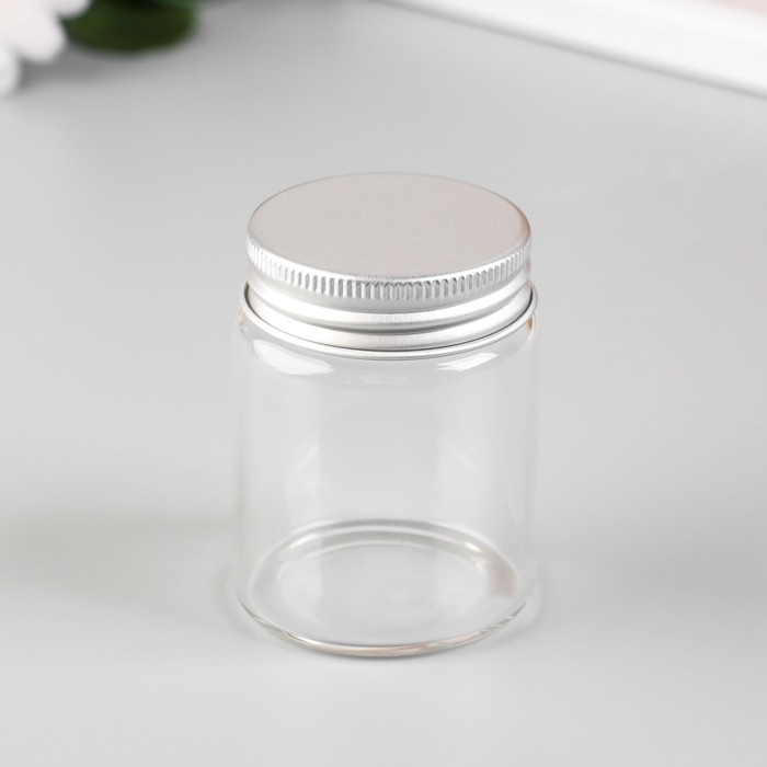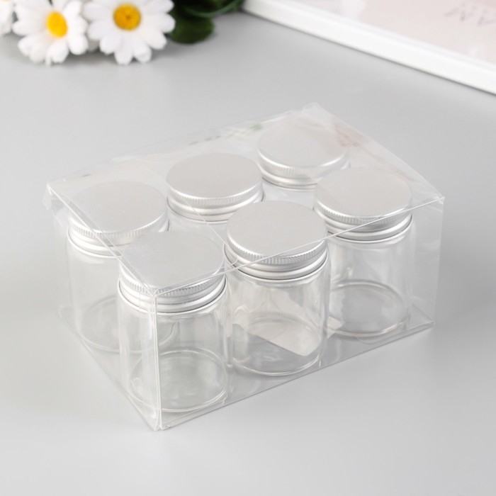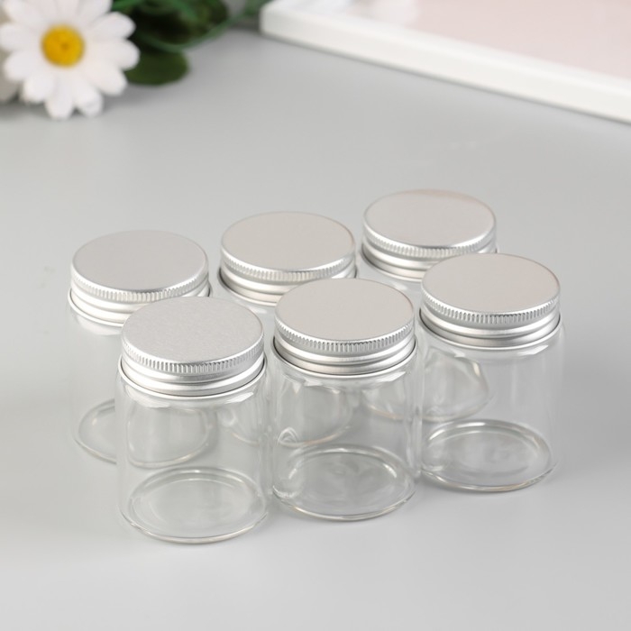 Декор для творчества стекло "Баночка с крышкой" серебро набор 6 шт 4,7х4,7х6 см
