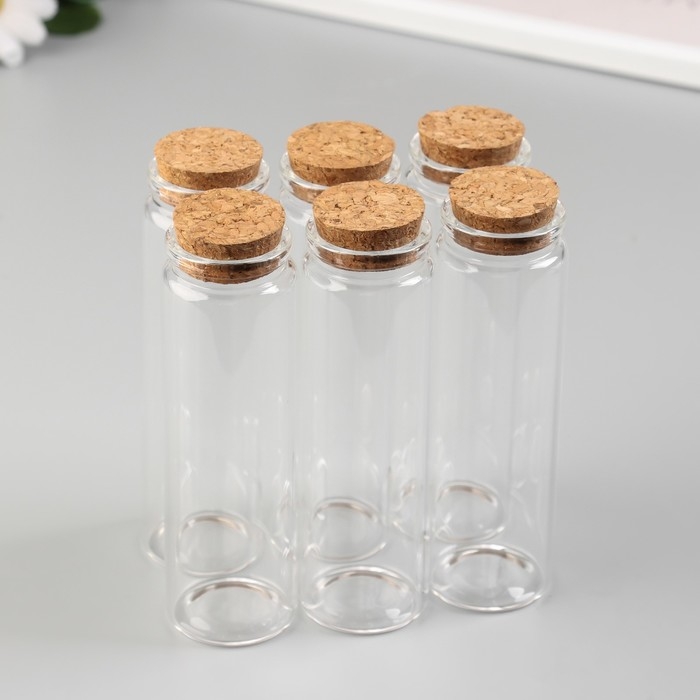 Декор для творчества стекло "Баночка с пробкой" набор 6 шт 12х3,7х3,7 см