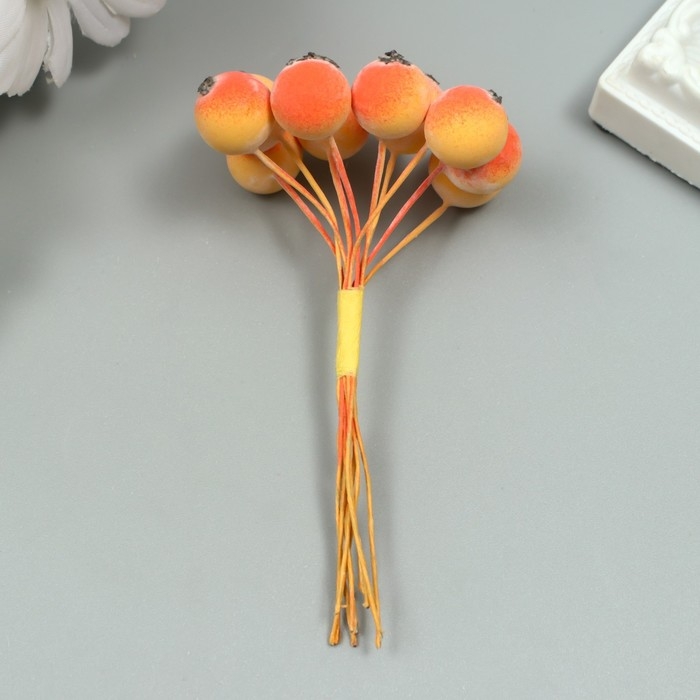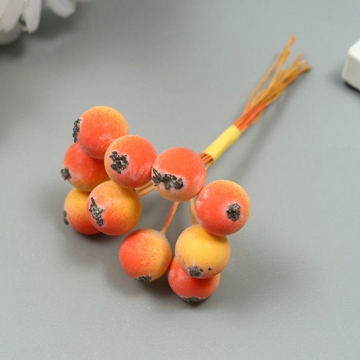 Декор для творчества "Ягодка рябины" 1 букет=10 ягод оранжево-жёлтый 10х1,5 см