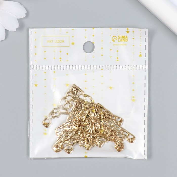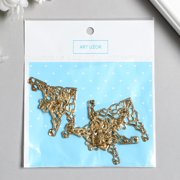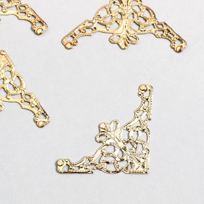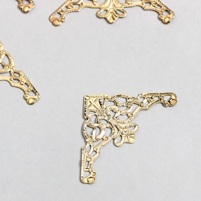 Декор металлический "Узорный уголок" набор 6 шт золото 3,5х3,5 см