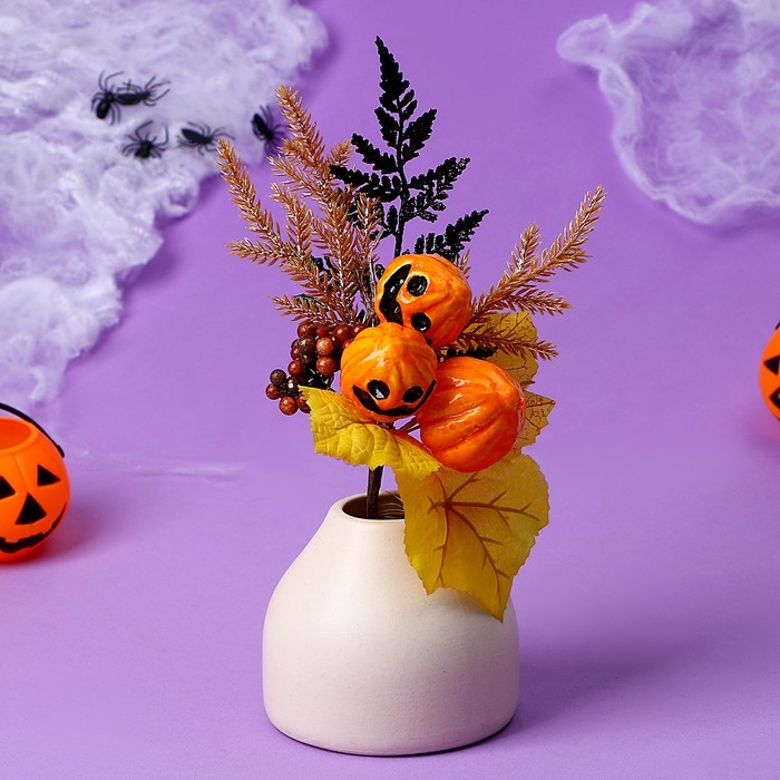Декор на палочке «Хэллоуин». Создайте волшебную атмосферу Хэллоуина с помощью декора на палочке в виде тыквы. Это стильное украшение идеально подходит для тематического оформления интерьера, добавляя праздничного настроения и уюта. Легкий и компактный декор легко устанавливается и не требует дополнительных усилий.