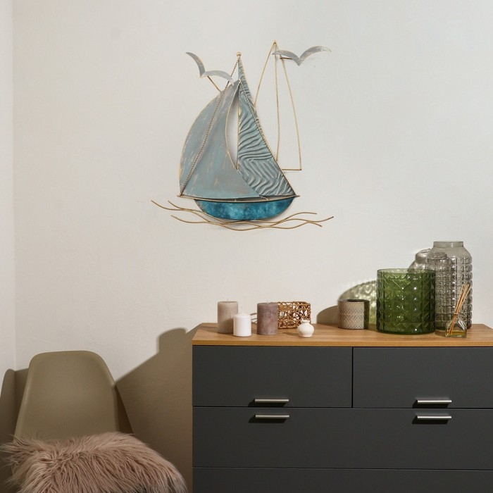 Декор настенный металл "Корабль с чайками" 38х3,8х40 см