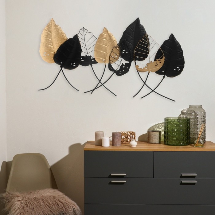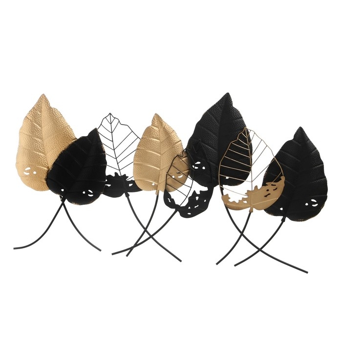 Декор настенный металл "Листья" чёрный с золотом 120х67 см