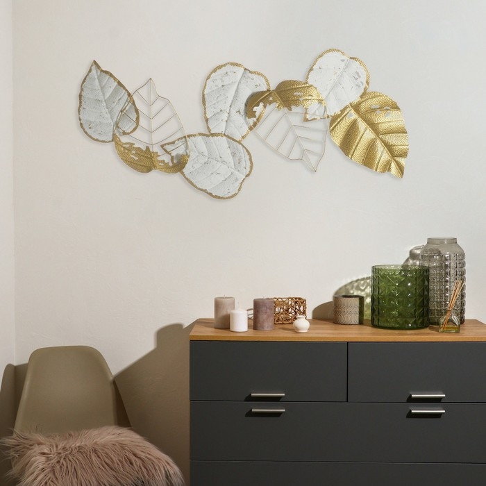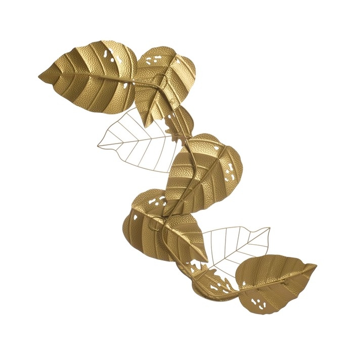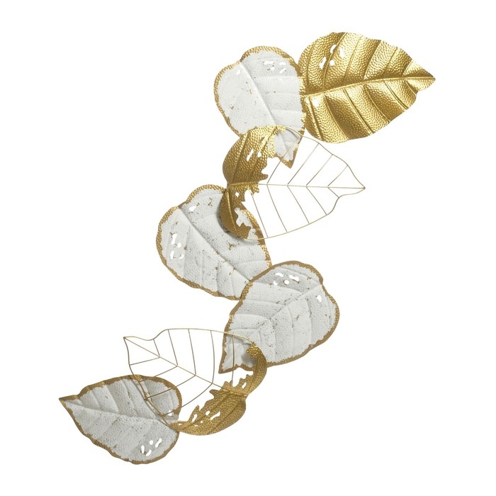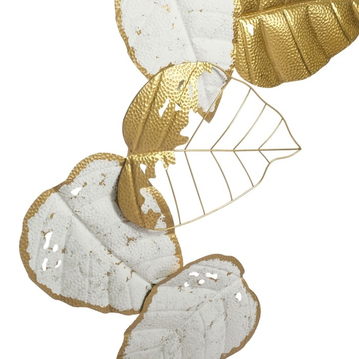 Декор настенный металл "Листья скелетированные" бело-золотые 54х124х5 см