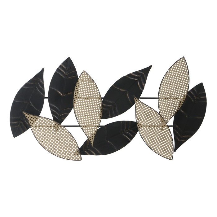 Декор настенный металл "Листья. Точки" чёрный с золотом 105х55 см