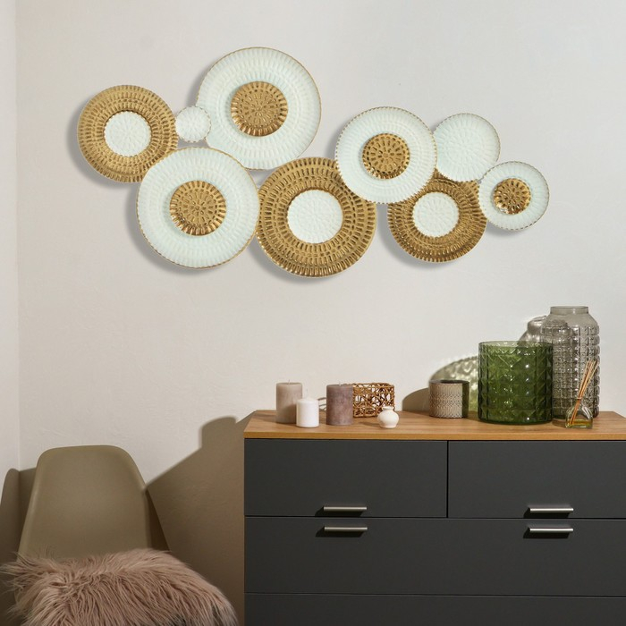 Декор настенный металл "Пустыня" белый с золотом 53,5х6,5х110 см