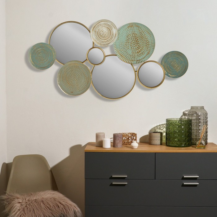Декор настенный металл с зеркалом "Голубая пастель" 58х5х115 см
