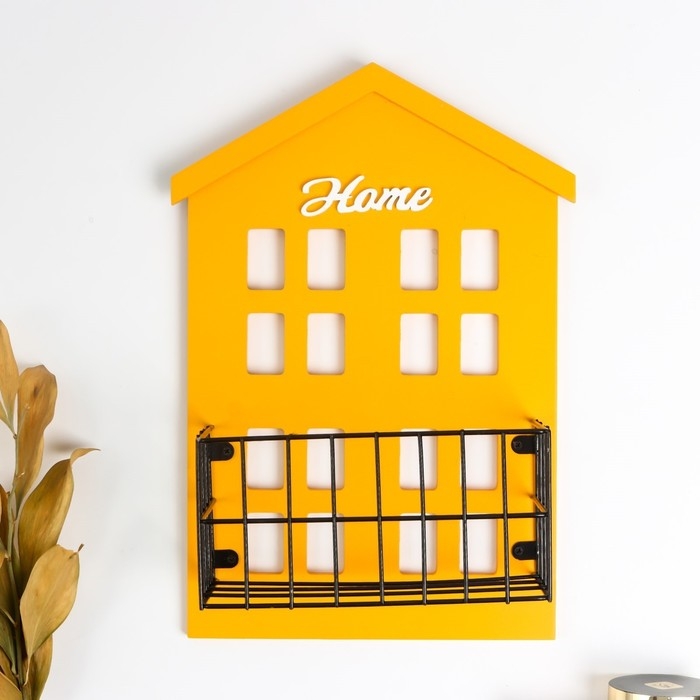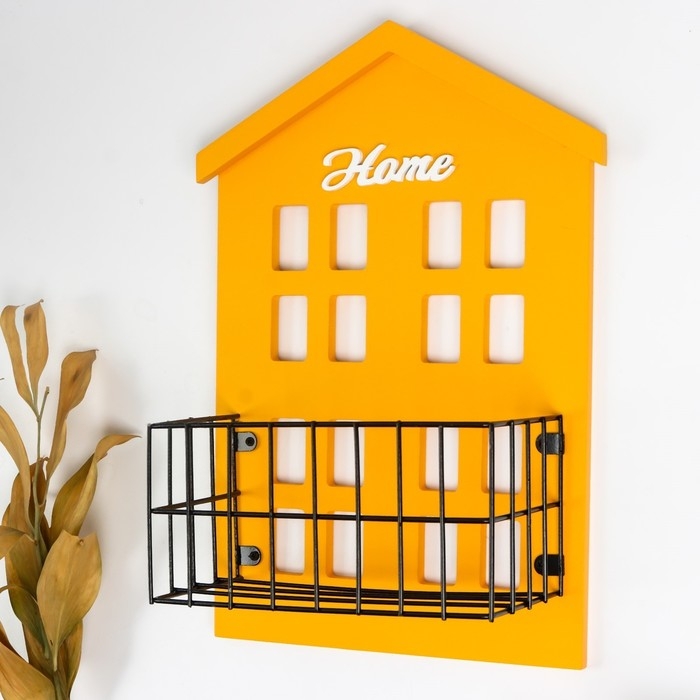 Декор настенный с полочкой дерево "Домик" жёлтый 31х9,4х22,2 см