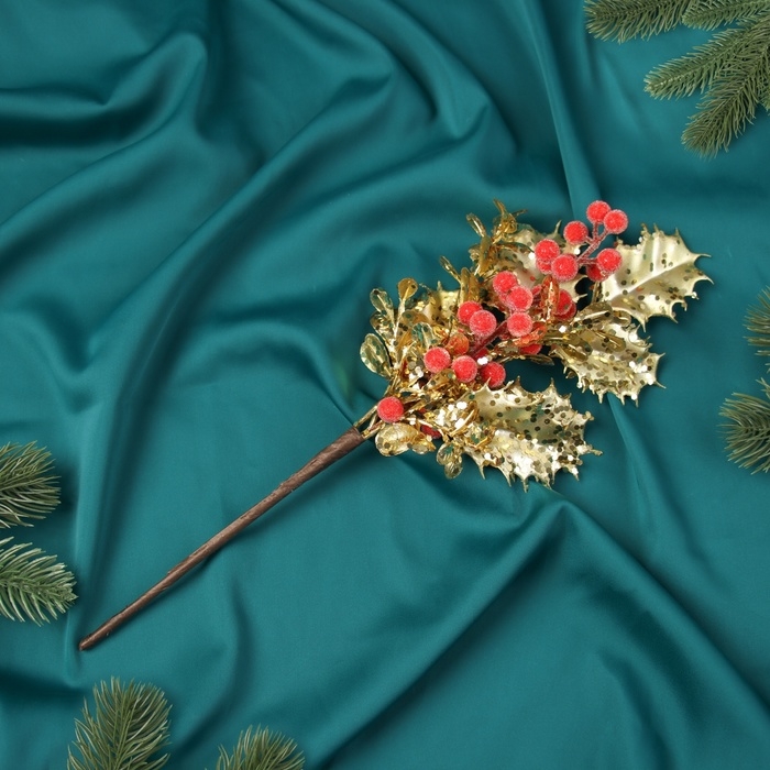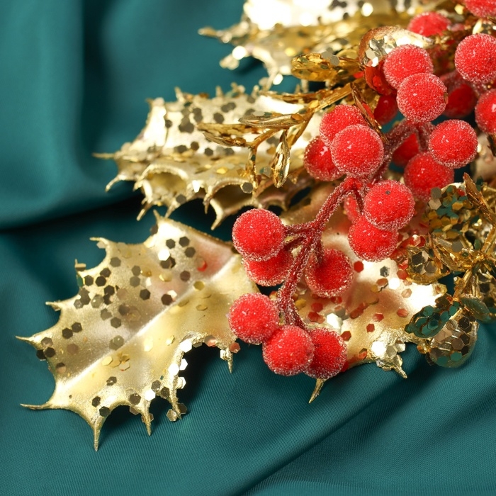 Декор "Новогодняя грация" ягодки листочки, 30х12 см, красно-золотой