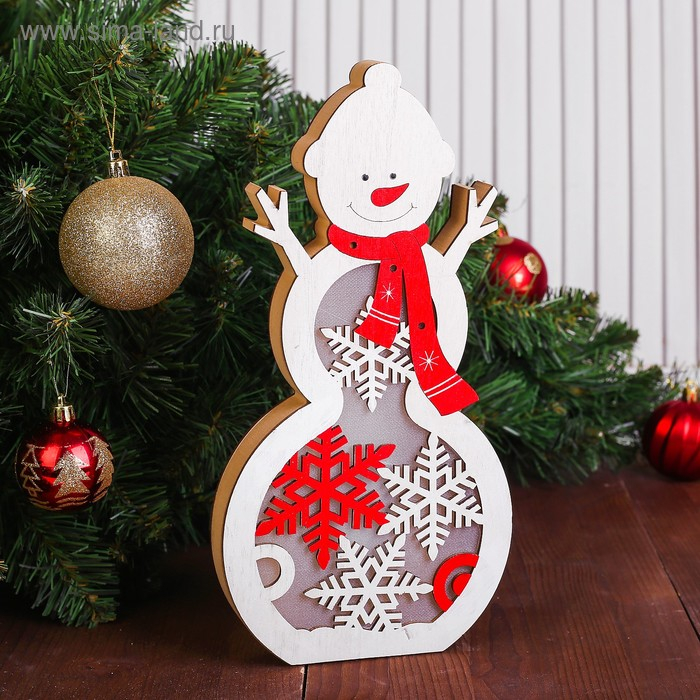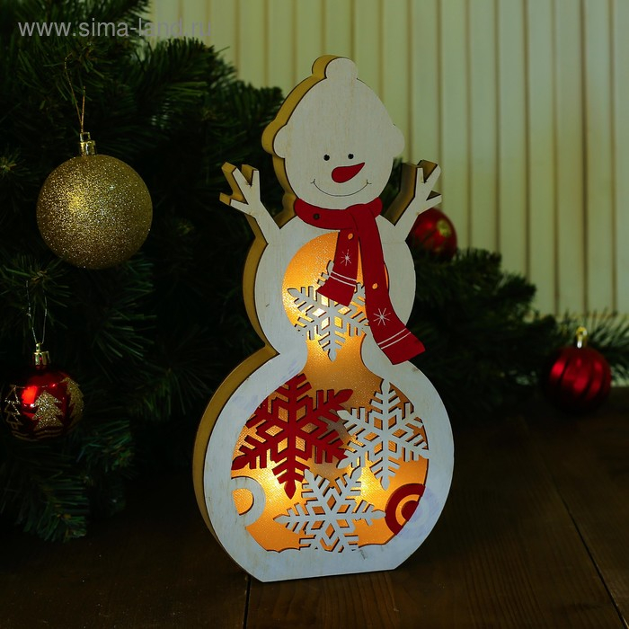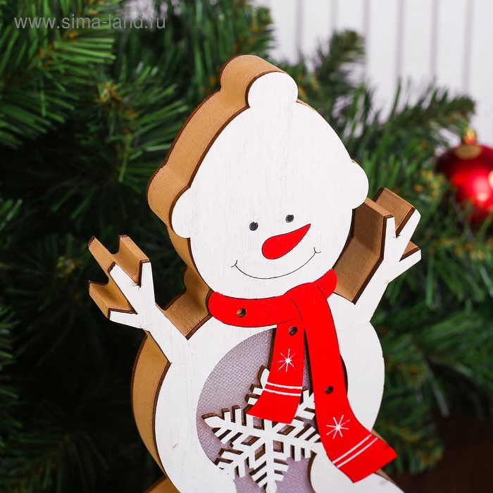 Светодиодная фигура «Домик со Снеговиком» 16 × 11 × 4.5 см, дерево, батарейки АААх2 (не в комплекте), свечение тёплое белое