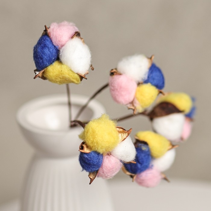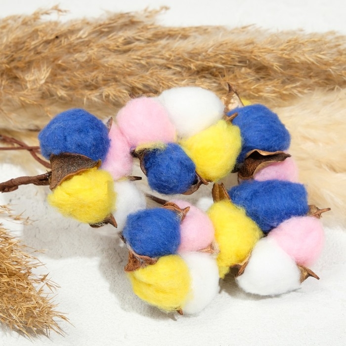 Декор сухоцвет "Хлопок" d-5 см, 30 см, микс набор 5 шт