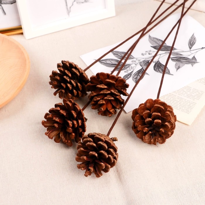 Декор сухоцвет "Сосновая шишка" d-5,5 см 40 см, коричневый